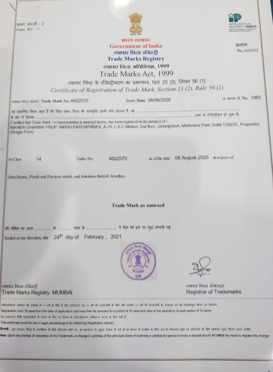 Below are our certificates of Trade Marks (Registration Certificates) which authenticates that we are the approved registered seller and distributors of these unique stones.